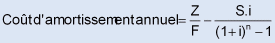 où Z, F, i et n sont définis comme ci-dessus et où S est la valeur résiduelle des bâtiments et du matériel, respectivement.