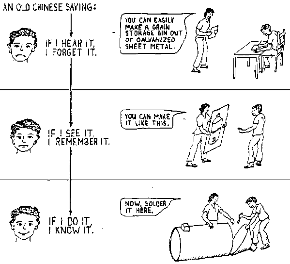 In community education, the methods used in teaching are as important as the information to be shared. The importance is underscored when there are people involved who have had little formal schooling. This session focuses on the factors that help and impede the process of "learning as discovery", as well as ideas for improving teaching and communication skills.
