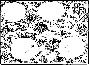On sites where ground vegetation is below one metre, it is normally sufficient to clear patches around the plants or strips along the lines of plants. The strips should be about one metre wide. Patches a radius of about 1 metre radius can be cleared with the hoe when digging the planting hole.