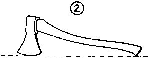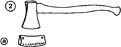 For professional work, the type of axe shown in the picture is recommended (2). The weight should be from 0.8 to 1.5 kg, the length of the handle from 60-80 cm, depending on the length of the worker's arms (3). The handle should have fawnfoot shape (2) and be made of strong wood. Workers should be able to make handles and to replace broken handles themselves. During transport, the axe blade should be secured with a protective cover which can be made easily, e.g. from a worn bicycle tyre (2a).