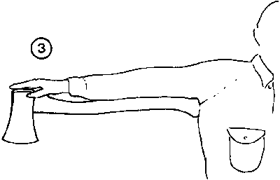 Hone the axe several times daily with a whetstone (3). Use water or spit on the whetstone to keep it moist. Honing is done downwards on one side with the handle down (3a) and on the other side with the handle up (3b).