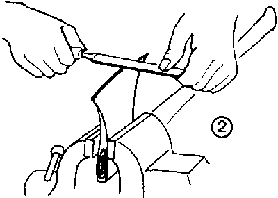 - Test for correct alignment (1, 2). If necessary, adjust alignment with the wood rasp after having taken off the head of the axe once more.