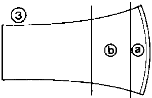 A model of a fawnfoot handle is used for drawing the outline of the handle on the scantling (2b). The model can be copied from a new handle on a piece of cardboard.
