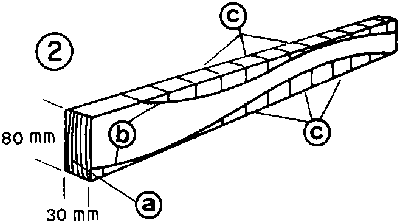 A scantling is sawn or squared with an axe out of a suitable piece of wood (1). Annual rings should run through the scantling as indicated in the drawing (2a). The scantling must be well seasoned before the handle is made.