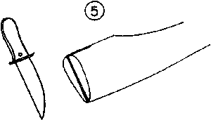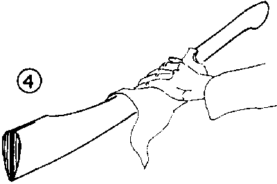 The handle is finished by polishing with sandpaper (4), a piece of glass (for instance, window glass), or a knife.