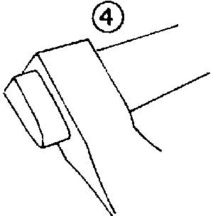 - Fit the handle exactly to the eye of the axe, preferably with a wood rasp (3).- Put handle into the eye (4) and test for correct alignment (1, 2).