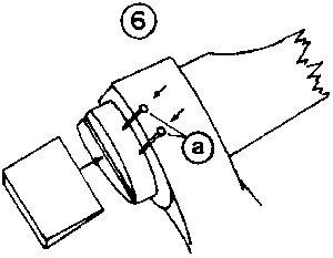 - Put the handle into the eye again and drive a small hardwood wedge into the saw cut (6).