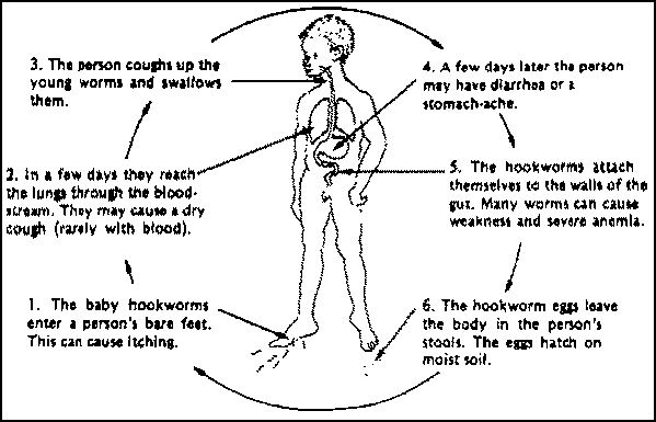 Hookworm infection can be one of the most damaging diseases in childhood. Hookworms may be present in the gut in large numbers without a worm ever being seen in a persons stool (faeces). Any child who is anaemic, very pale or eats dirt, may have hookworm. If possible his/her stools should be tested.