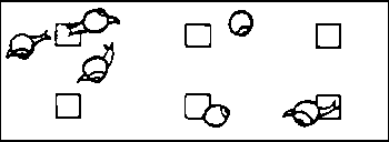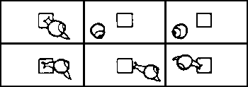 b) 1 animal in 1 container with 1 square. Repeat 6 times with different squares.