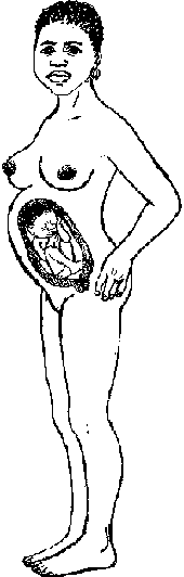 Towards the end of pregnancy, about 95% of babies come to lie in the womb with their heads pointing downwards, so that the head is delivered first (see Figure 11.1). In 4-5% of cases, the baby lies with the feet or buttocks pointing down; these cases are called breech presentations (see Figure 11.2). Rarely, the baby may lie diagonally with the shoulder ready to come out first; this is called transverse lie (see Figure 11.3). All cases where the baby's head does not come out first are abnormal; childbirth may be more difficult and can result in injury or death of the baby or the mother. Transverse lie is especially dangerous, and should always be referred to a hospital. Abnormal lie is most common in women who have had many babies before, or those carrying twins (see Figure 11.4). It is usually possible for a trained person to tell whether the baby is lying in an abnormal position towards the end of the pregnancy. A trained and skillful person must assist in such deliveries. In some cases a Caesarean section (see next chapter) may be necessary.