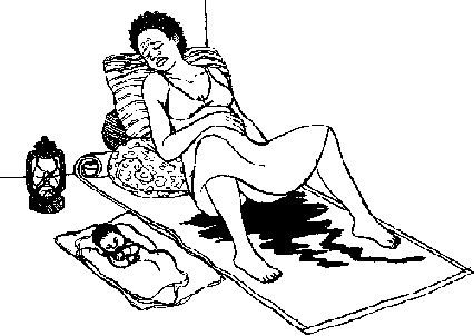 First, if labour continues for too long (over 12 hours) both mother and baby may become exhausted (see Figure 11.5). The mother may become very dry (dehydrated) because after many hours in labour she has perspired a lot and lost a great deal of body water. Second, the mother may catch an infection during the long hours in labour. The infection can spread upwards into the womb and affect the baby too. Third, if something is not done quickly to relieve the obstruction, the womb will continue to contract powerfully to try to push the baby out, and may tear or rupture. Severe bleeding may occur inside the abdomen. This will soon lead to shock in a mother already exhausted and dehydrated from prolonged labour.