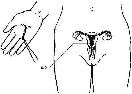 INTRAUTERINE DEVICES (IUDs) Description: IUDs are plastic devices inserted into the womb through the vagina by a trained person. They are left in place for a period of time to prevent pregnancy (see Figure 17.8). Some are coated with copper, and some contain small amounts of the female hormone progestogen. Most IUDs have a short "tail" or string that the woman can feel by putting her fingers into her vagina. Generally the string is not felt during sexual intercourse by either partner.
