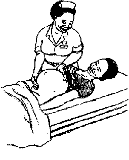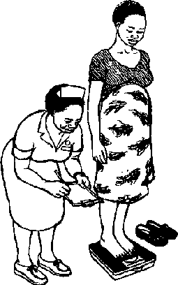 During later antenatal visits, the midwife, nurse, or doctor will be on the lockout for any complications that might develop. At each visit the woman is weighed, her blood pressure is checked, and usually her urine is tested. Half way through the pregnancy her blood is tested again to check for anaemia. At every visit her abdomen is measured and felt to make sure the baby is growing normally and, towards the end of pregnancy, that the baby is lying in the right position (see Figure 7.6). At times it is necessary to carry out some new tests or repeat old ones to rule out problems. Health education and counselling should be provided, based on the findings of the examination. In particular, the question of where the woman should deliver the baby needs to be discussed (see next section). Toward the end of the pregnancy, family planning methods can be discussed so that women know the options available to them after their babies are born (see Chapter 17).