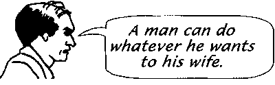 · If a man believes that to be a man, he must control what a woman does, he may feel it is OK to hurt her· Some men think that they have a right to certain things - to a good wife, to sons, to making all the decisions in the family - just because they are men.