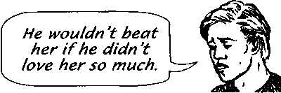 One form of abuse often turns into another In many cases, verbal abuse becomes physical abuse after a while. It may not seem like it at first, but the man may slowly begin to accidentally push or bump the woman, or begin to sit down in the place the woman usually sits, so that she has to move. If this behavior works for him, it may get worse until he becomes violent. Not all women who suffer other forms of abuse are beaten, but all women who have been beaten have suffered from other forms of abuse. |