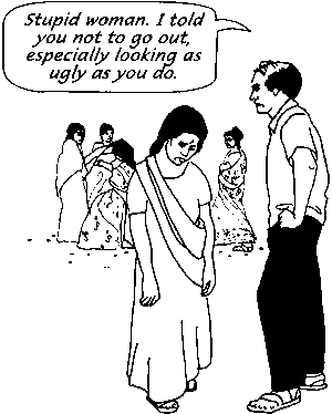 When you examine a woman, look for signs of abuse. Men often beat their wives where the marks will not show. Women who have been beaten may wear clothing to hide it. As a health worker, you are one of the few people who sees the private parts of her body.