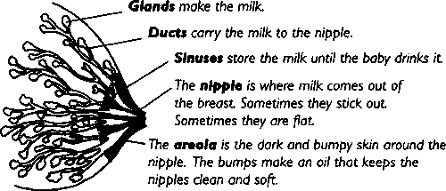 Breasts come in all shapes and sizes. They start to grow when a girl is between 10 and 15 years old, when she changes from a girl to a woman (puberty). They make milk for babies after pregnancy. When they are touched during sexual relations, a woman’s body responds by making her vagina wet and ready for sex.