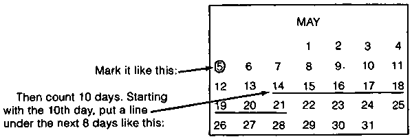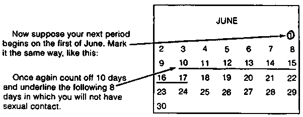 This method is not very sure to prevent pregnancy, but it has the advantage of not costing anything. It is more likely to work for a woman whose periods come very regularly, more or less once every 28 days. Also, the husband and wife must be willing to pass one week out of each month without having sex the regular way.