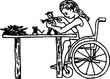 Ideas for starting an art center for disabled people. Materials, equipment, aids, and instruction needed for many crafts and art forms.