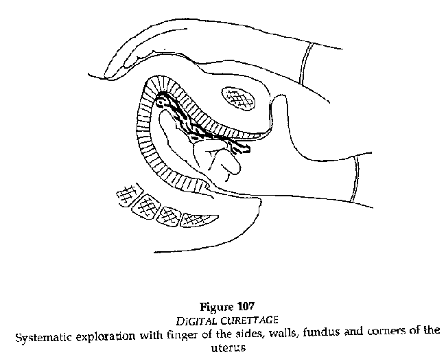 Digital extraction of placental fragments after a miscarriage.