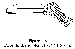 Place the dry plaster rolls in a stocking of adequate length and width.