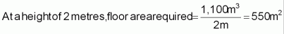 Calculations: Allocate 550 m2 + 20% for access and ventilation = 660 m2 of floor space. | |