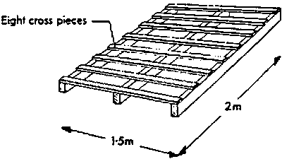 7.2.3 The required storage area is directly related to the volume of goods, the storage plan, maximum storage height and admissible floor loading. Allow at least 20% over the required floor area for access and ventilation. For warehouses built on the ground, admissible floor loading may be 1,000 to 3,000 Kg/m2, depending on the building specifications for floor strength. If there is a basement or other open space beneath the floor, floor loading may not exceed 500 to 800 Kg/m2. Stacks of heavy items should never exceed two metres. Bagged commodities and bulky items may be stacked higher, but always ensure that floor loading is within acceptable limits for the particular warehouse facility. Stacks must never touch the walls or structural supports of the building.