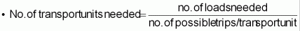 (c) When are supplies needed? How soon the supplies are needed may affect the mode of transport selected, and the size of the transport fleet. One 10-MT truck can carry 300 MT in 30 days if the distance from source to destination requires only a one-day turnaround time, but if the 300 MT are required within 10 days, three trucks will be needed.