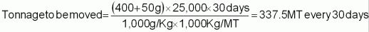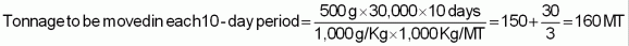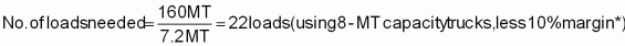 Total potential tonnage = 80 MT x 10 trips = 800 MT