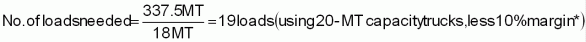 * 10% margin accounts for voluminous cargoes or under-loading due to road conditions.