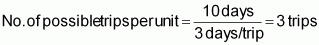 Ten 8-MT trucks can carry 80 MT each trip. In 30 days, with a turnaround time of 3 days, each truck can make 30/3 or 10 trips.