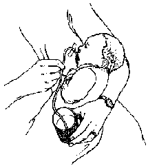 Ask someone to hold the cup, if you find it awkward to hold. To start off the milk can be held higher than your breast and baby. As soon as the milk flows through the tube, hold it lower. The idea is to make the baby stimulate your breast-milk by effective suckling, so only a trickle must get through the tube. Reduce the milk in the cup by a teaspoonful10 at each feed as the breast-milk increases.