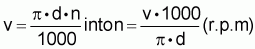 The necessary rotational speed (n) is calculated by conversion of