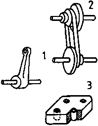1 lever on shaft, 2 pulleys on shafts, 3 bushes in bases (housings)