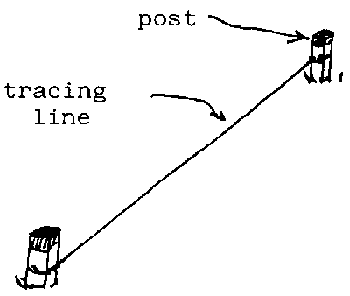 - The tracing line is stretched between the posts which should be approximately 30 cm apart.- With the pointed end of the pick, trace out the furrow, using the tracing line as a guide.