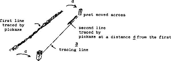 - A second groove, parallel to the first, is now traced along the ground, again using the pickaxe.