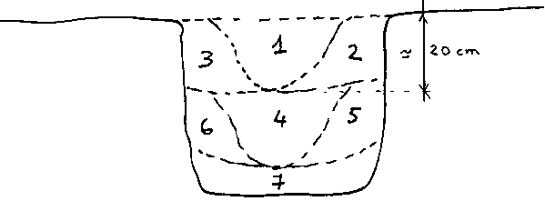 2. The middle of the ditch is dug out in the same way as before, in 20 cm sections until the required depth, as specified by the gang foreman, is reached.