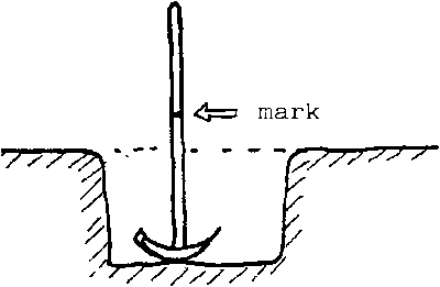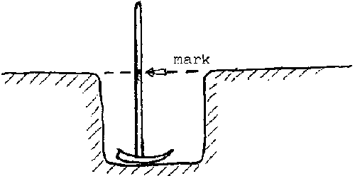 To make sure the ditch has been dug to the correct depth, the worker makes a mark on the handle of his shovel or pickaxe, representing the required depth and uses it to guide him during the course of the digging.