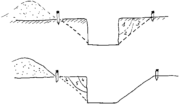 To do this, the bounds of the bank should be marked out. The gang foreman will work out what the distance between the vertical side of the trench and the edge of the bank should be.