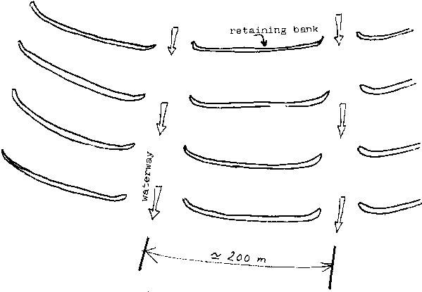 Work should begin with the protection of the highest-lying fields. Areas will be chosen which, although already suffering from the effects of erosion, can still be cultivated. It is pointless constructing ditches on land where all the topsoil has already been lost through erosion.