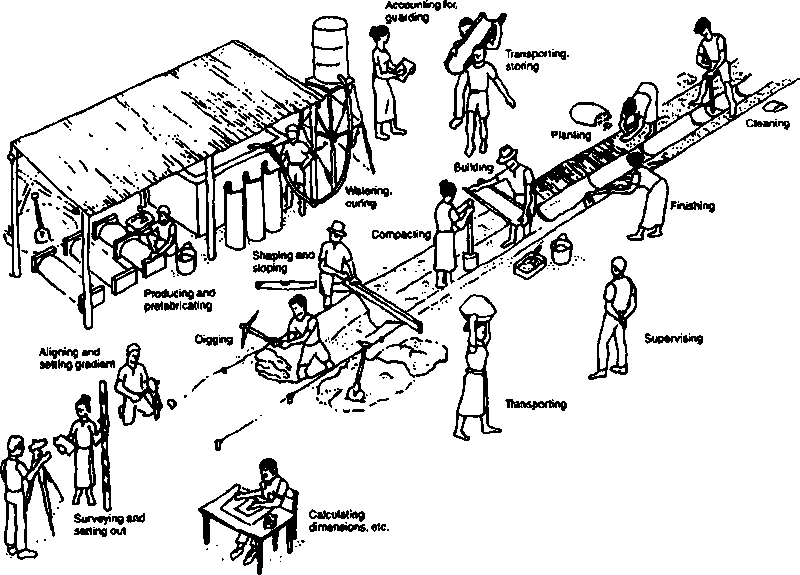 Most of these tasks require little special skill and can be done after an hour of instruction. The only task requiring real training is the production of prefabricated drain elements.