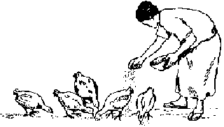 Starter ration for the first 7 weeks. Grower ration for the 7th-20th week. Layer ration for 20-week-old layers.