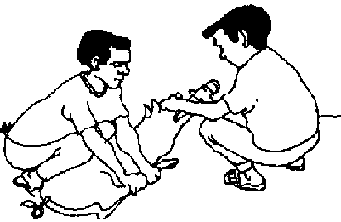 · Lie the animal on its front on the ground and tie it down or ask someone to hold it.