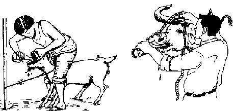 1 Tie the animal to a tree or pole.2 With small ruminants, mount the animal and hold it between your thighs.