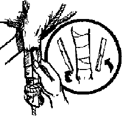 Splints support fractures and prevent the broken bone from moving. Splints must be made of stiff but light material, such as bamboo, the stalk of coconut or palmyra palm leaves, or the bark of Areca catechu.