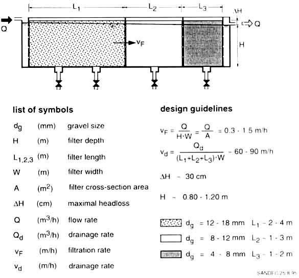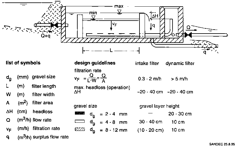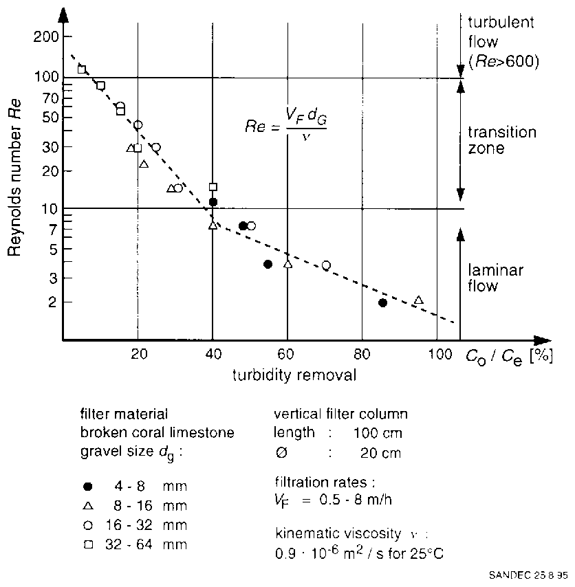 - reduce turbidity and suspended solids concentration by DC (mg/l) to a level required for adequate slow sand filter operation