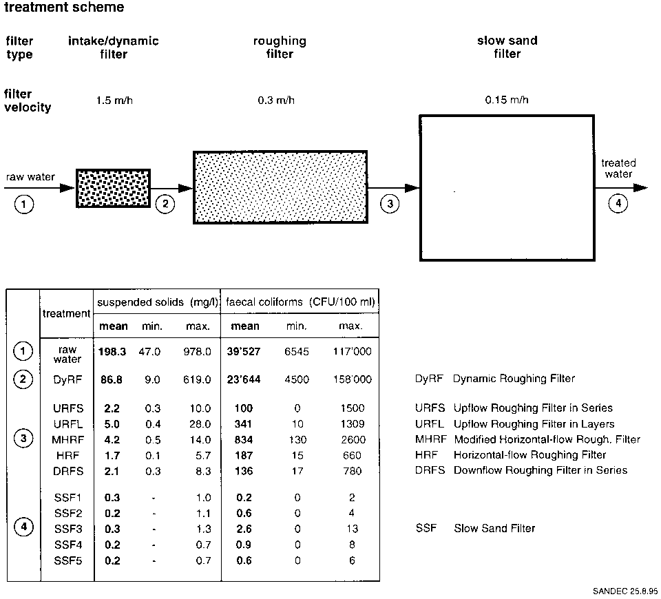 Hence, biologically active roughing filters are not only efficient in removing solid matter but also in improving significantly the chemical and microbiological water quality.