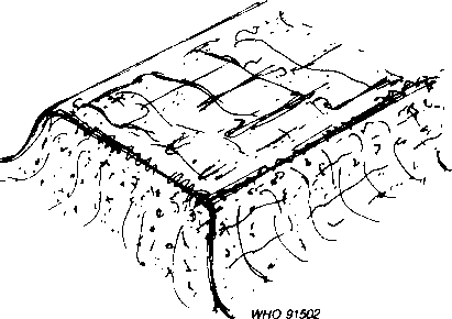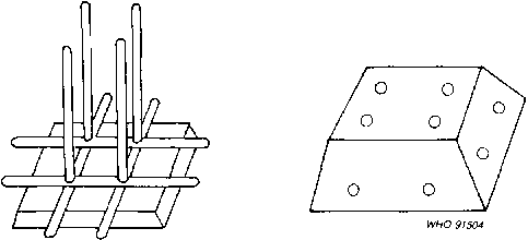 Various methods of aeration have been tried. For a small refuse heap (as in a village), refuse can be tipped over bamboo or timber poles which are removed when the heap is complete, leaving holes through which air reaches the refuse (see Fig. A1.4). Other approaches, including forced aeration (using compressed air blowers or suction) and use of porous floors, have not been very successful in keeping large masses of material aerated.