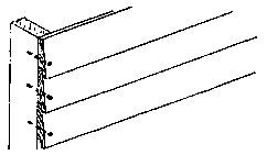 When fixing the boards to the frame only one nail is used in each stud for each board. The nail must be placed near the lower edge of the board as the top edge will be held in place by the next board. Only galvanized 50 mm jolthead nails are used as they do not rust. Each nail has to be punched immediately, taking care not to leave a hammer head impression on the boards.