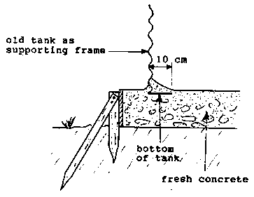 Set the tank in the fresh concrete and cover the 10 cm bottom iron with fresh concrete.